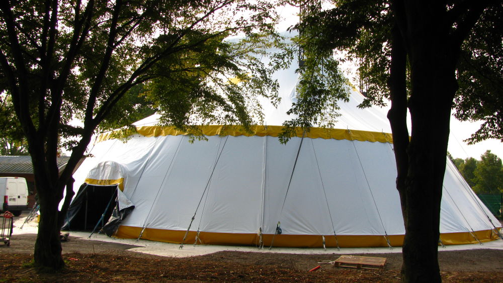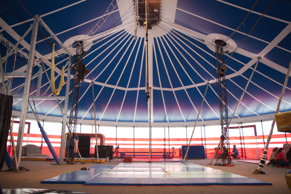 Le Chapiteau-école, d’une superficie de 550 m², est consacré à l’accueil d’une grande partie de nos cours loisirs ainsi que des Classes Artistiques. Il permet la mise en place de nos stages-vacances et de nos stages spécifiques. Il peut aussi accueillir du public dans le cadre d’événements artistiques.